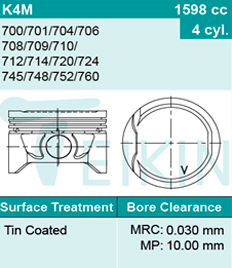 | T70600STD T70600050 T70600075 T70600100 | RENAULT MEGANE/ CLIOII (usar con Anillos 2C4313) OEM 7701474854 7701474855 7701474856 | K4M | 1.598 | 79.5 | 3.130 | 1.5 | 1.5 | 2.5 | ![]() |