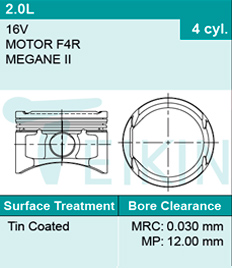 | T70101STD T70101050 | RENAULT MEGANE, LAGUNA (usar con Anillos 2C4909) OEM 8200203129 | F4R | 1.998 | 82.7 | 3.256 | 1.2 | 1.5 | 2.0 | ![]() |