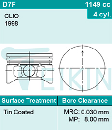 | T70104STD T70104050 T70104075 T70104100 | RENAULT TWINGO 16 VAL (usar con Anillos HAS2C4549) OEM 77 01 475 781 | D4F | 1.149 | 69.0 | 2.717 | 1.2 | 1.5 | 2.5 | ![]() |