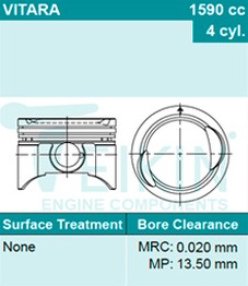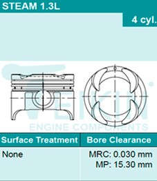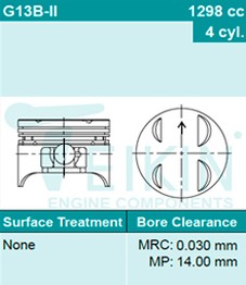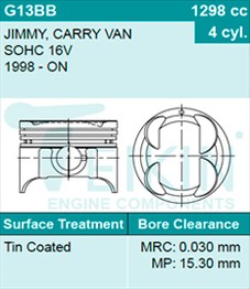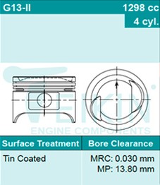 | T45654STD T45654025 T45654050 T45654075 | SUZUKI SWIFT TWINCAM (usar con Anillos HAS2C4258) OEM 12111-86501 | G13K | 1.298 | 74.0 | 2.913 | 1.2 | 1.5 | 2.8 | ![]() |