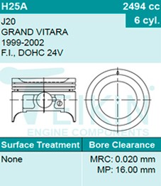 | T45131STD T45131025 T45131050 T45131075 T45131100 | SUZUKI GRAND VITARA (usar con Anillos HAS2C5109) OEM 12100-86830 12100-86831 | H25 | 2.494 | 84.0 | 3.307 | 1.2 | 1.5 | 2.5 | ![]() |