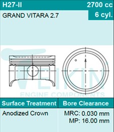 | T45142STD T45142050 T45142075 T45142100 | SUZUKI GRAND VITARA H27A SZ (usar con Anillos HAS2C4567) OEM 12100-6681-0A0 | H27A | 2.737 | 88.0 | 3.465 | 1.2 | 1.5 | 2.8 | ![]() |