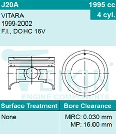 | T45147STD T45147050 | SUZUKI GRAND VITARA (usar con Anillos HAS2C4521) OEM 12100-65820-0A0 | J20B (SX4) | 1.995 | 84.0 | 3.307 | 1.2 | 1.2 | 2.5 | ![]() |