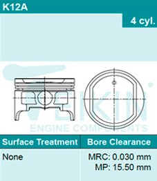 | T45141STD T45141050 T45141075 T45141100 | SUZUKI WAGON R K12 (usar con Anillos HAS2C4047) OEM 12100-75821-0A0 | K12A | 1.171 | 71.0 | 2.795 | 1.0 | 1.2 | 2.0 | ![]() |